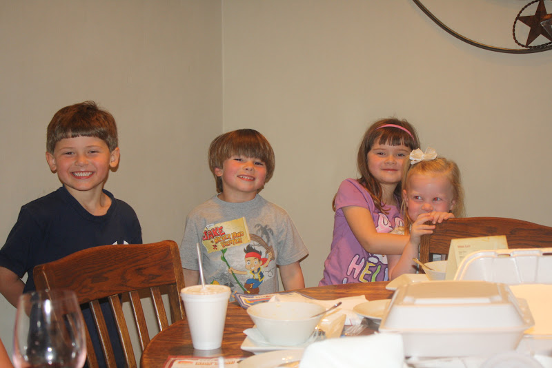 The kids! Derek and Sophie are actually Brian's cousins, but I don't think anyone knows the difference :). These four had a great time playing together! Derek and Sophie are three months older than Wyatt.