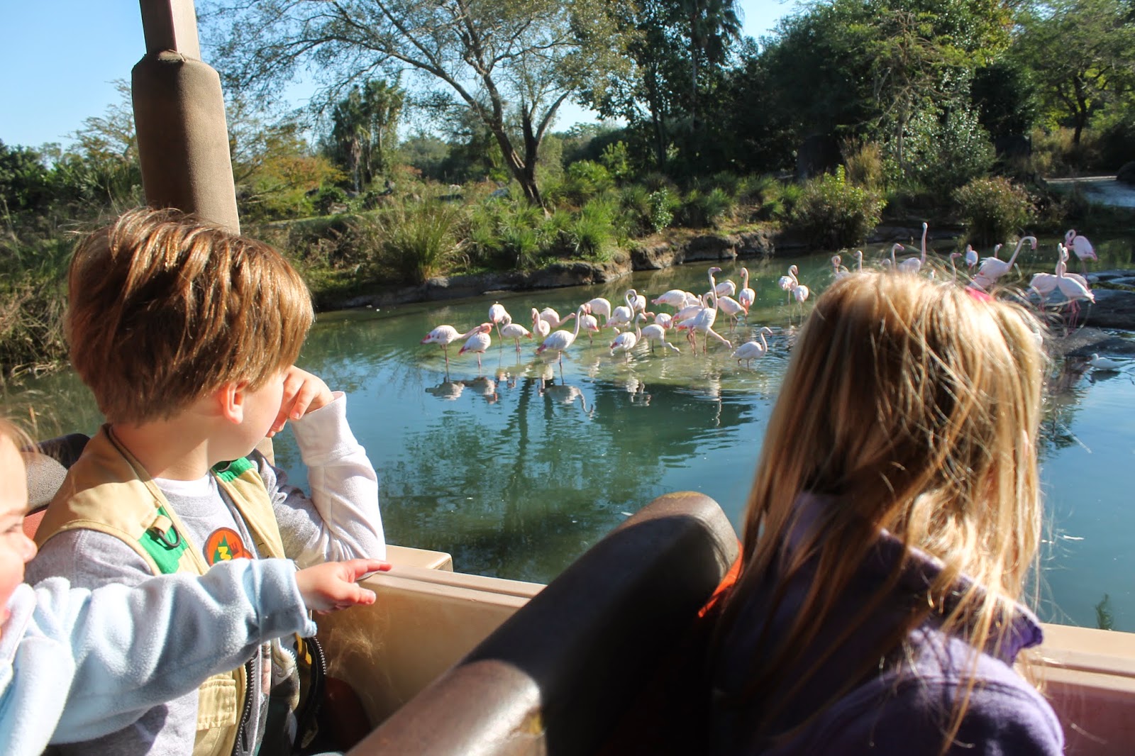 The flamingos are one of our very favorite spots on the safari - their sandpit is actually a Hidden Mickey!